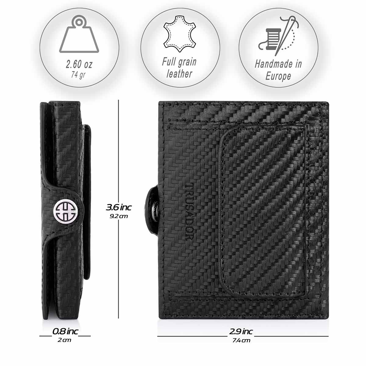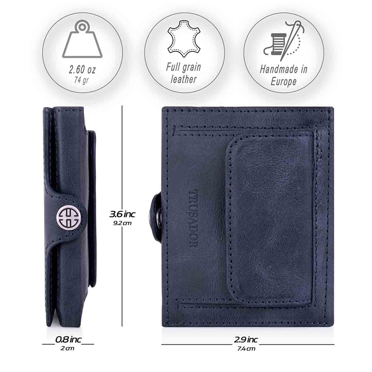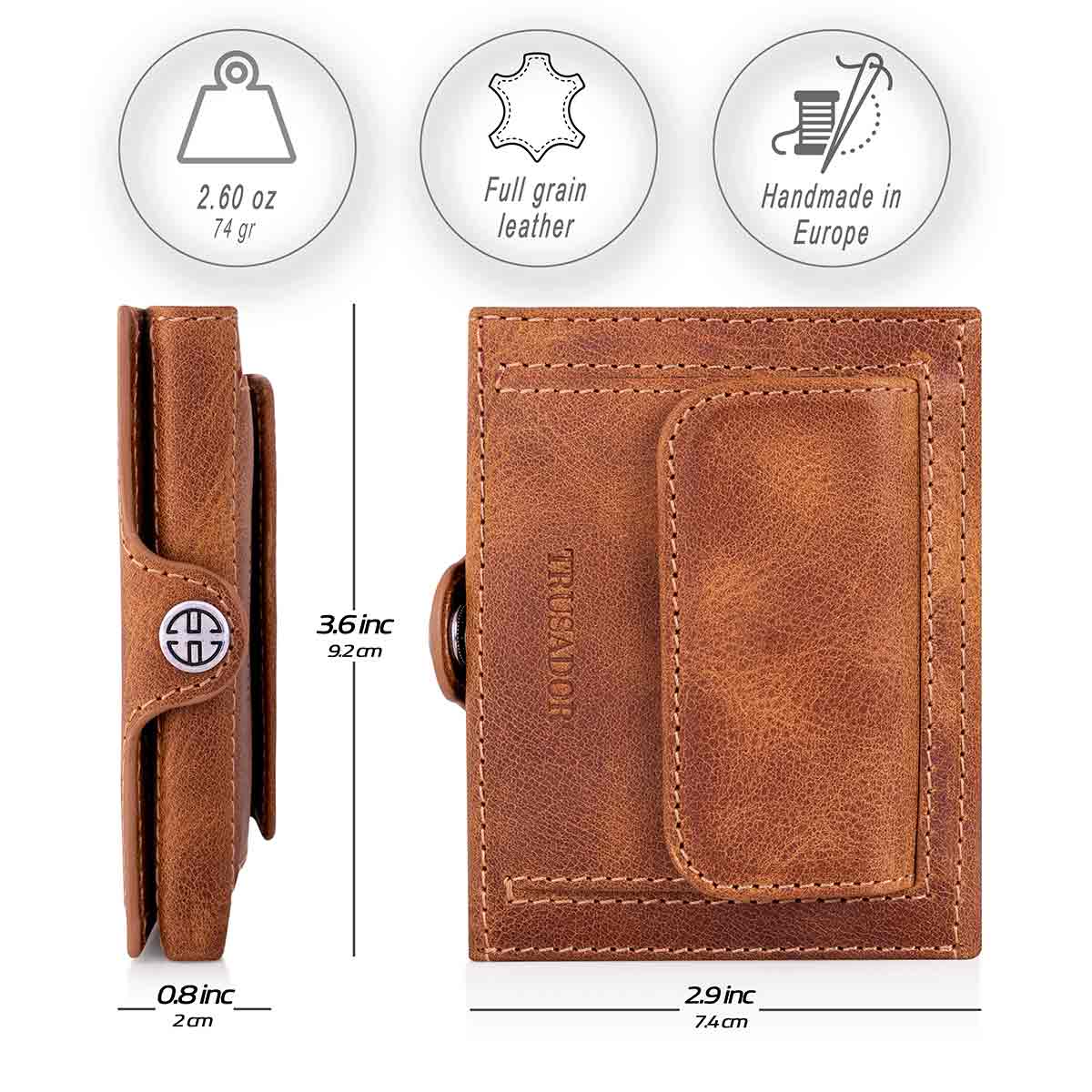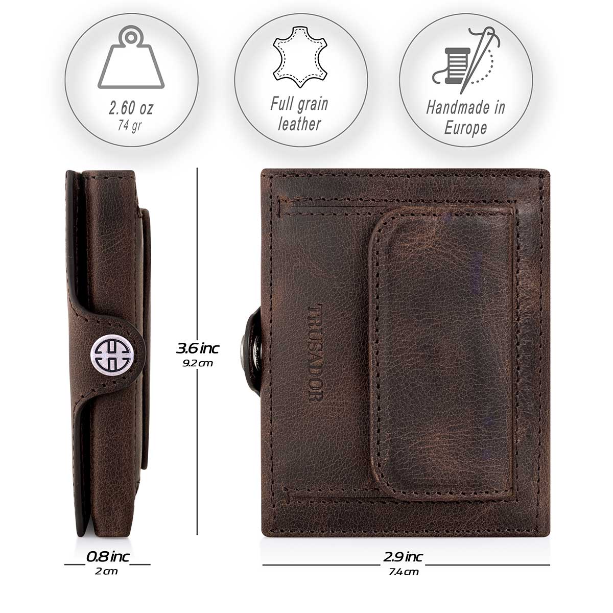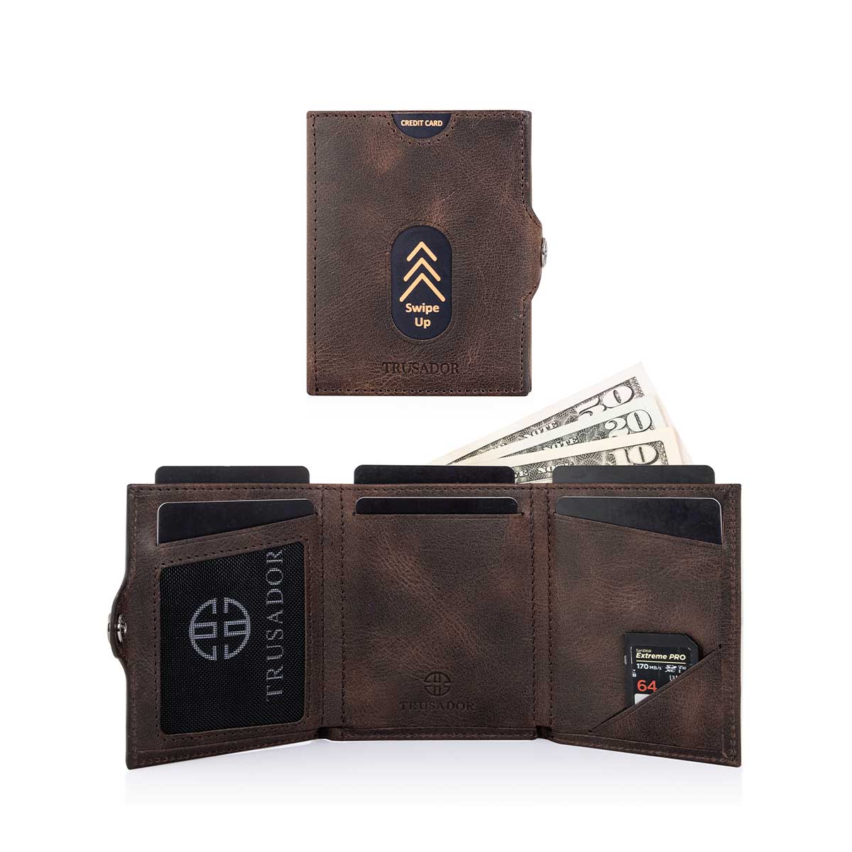• Erkekler ve Kadınlar İçin Kompakt Deri Cüzdan - İç kısmı, kartları, nakit parayı ve kimlik kartını güvenli bir şekilde tutmak için birden fazla bölme içerir. Bu cüzdan 8 kartlık yuvası ve kolayca bozuk para saklamak için uygun küçük bir bozuk para cebi içerir. 10-12 kredi kartı ve 15 banknot saklayabilirsiniz. Kapalıyken ölçüleri 9 x 7 x 2 cm'dir ve açıldığında ölçüleri 15 x 21 x 1 cm'dir.